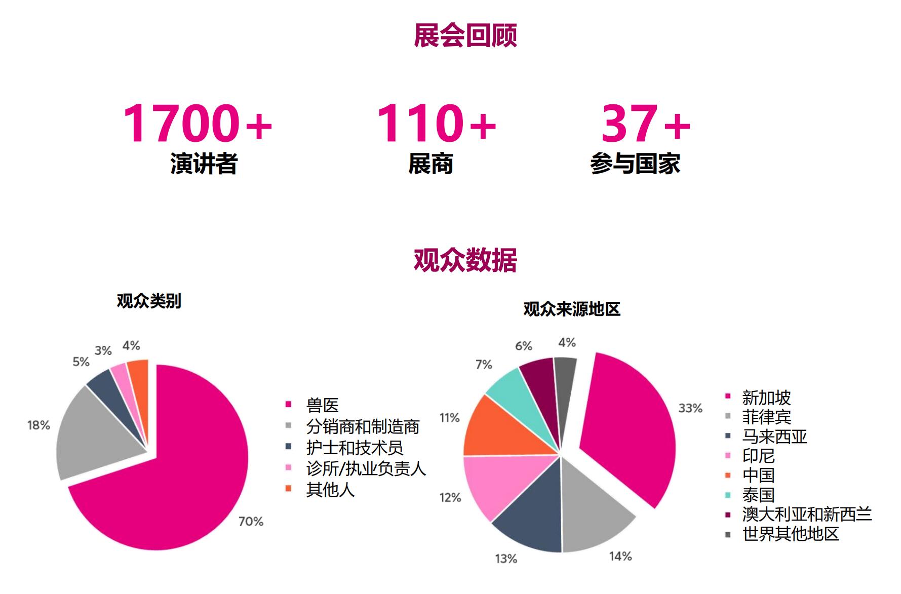 新加坡獸醫(yī)、寵物和小動物醫(yī)療展(Singapore VET Show)是由Closer Still Media組織的全球巡回展覽。自 2019年創(chuàng)辦以來,該展會已迅速發(fā)展成為亞太地區(qū)最具影響力的獸醫(yī)行業(yè)盛會之一。展會同期舉辦高水平的醫(yī)學(xué)專業(yè)論壇,邀請全球頂級專家出席,分享前沿技術(shù)信息和行業(yè)趨勢,為參會者提供寶貴的學(xué)術(shù)與實(shí)踐指導(dǎo)。展會將展示最新的獸藥產(chǎn)品和獸醫(yī)相關(guān)技術(shù),參展商和觀眾將聚集在展會上交流和洽談業(yè)務(wù)。