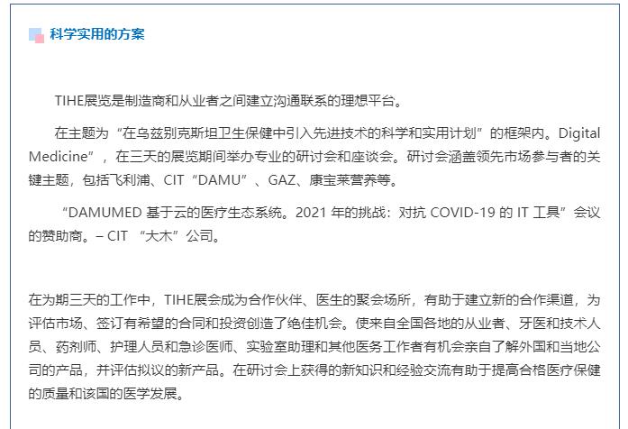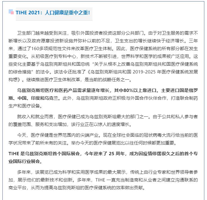 首頁 資訊中心 展會(huì)報(bào)道 TIHE 2021-第25屆烏茲別克斯坦國際醫(yī)療醫(yī)藥展 圓滿閉展!
