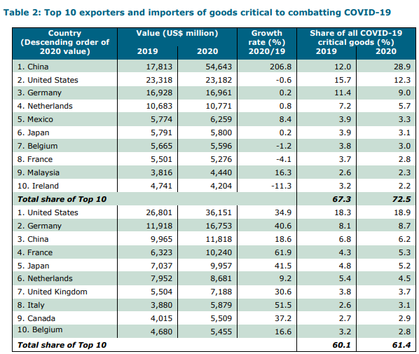疫情關(guān)鍵產(chǎn)品十大出口商與進(jìn)口商