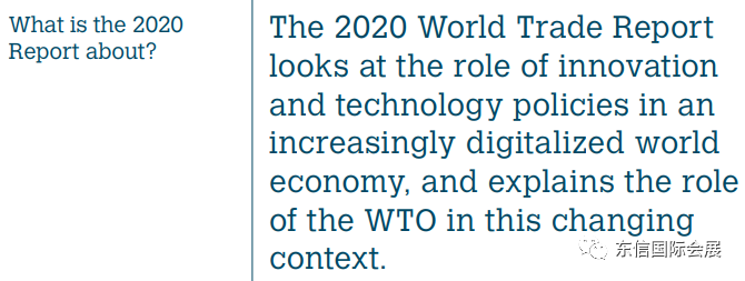 2020年11月23日,WTO發(fā)布《2020年世界貿(mào)易報(bào)告:數(shù)字時(shí)代促進(jìn)創(chuàng)新的政府政策》年度報(bào)告。