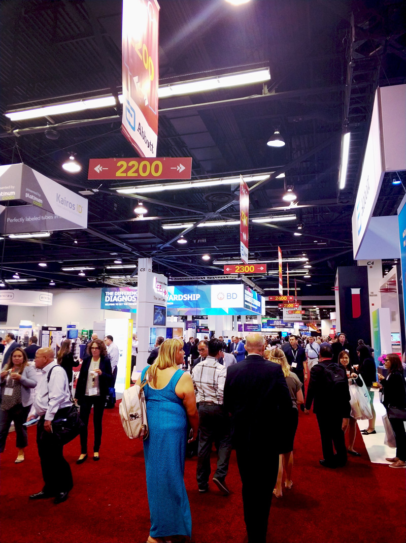 在這屆AACC上,參展商878家,其中,國內(nèi)參展企業(yè)136家,比去年略有增長(去年約120多家)。雅培、西門子、貝克曼、羅氏等國外知名診斷公司的展位巨大,國內(nèi)參展商也相當(dāng)醒目,比如邁瑞、迪瑞、新產(chǎn)業(yè)、安圖、萬孚、優(yōu)利特、愛威、科華。